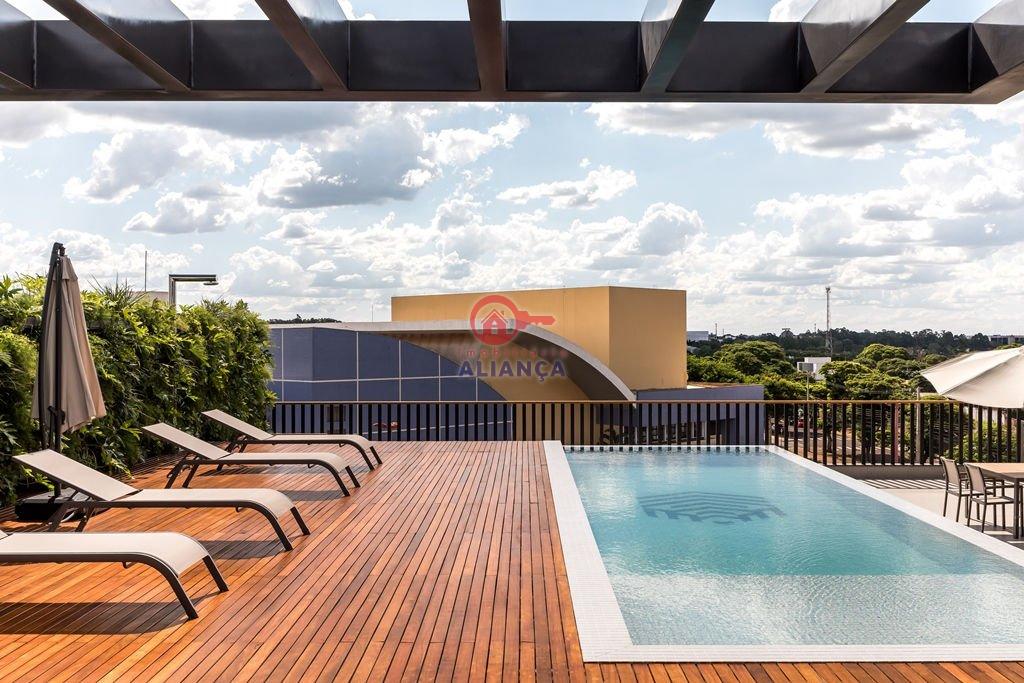 BEM-ESTAR: *Varanda gourmet *Sacada *Churrasqueira *Piscina térmica e piscina adulta com borda infinita. *Hall de entrada decorado e mobiliado *Brinquedoteca *2 salões de festas mobiliados e decorados *Interfone *Internet *Vista para o lago municipal PRÓXIMO A COLÉGIOS, SUPERMERCADOS, SHOPPING, FARMÁCIAS E BANCOS.