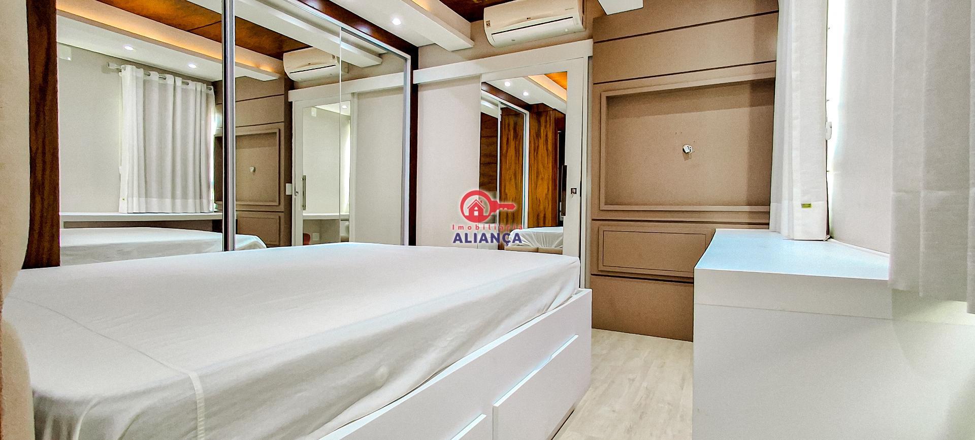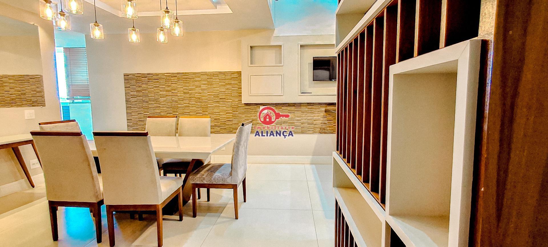 Apartamento duplex totalmente mobiliado, contendo área privativa de 257,84m²; 1º pavimento: 01 Suíte com móveis planejados e ar condicionado; 02 quartos mobiliados contendo ar condicionado; Banheiro social; Cozinha contendo móveis e eletros; 01 Sala de estar mobiliada contendo ar condicionado; 01 sala de jantar mobiliada; Área de serviço contendo móveis;