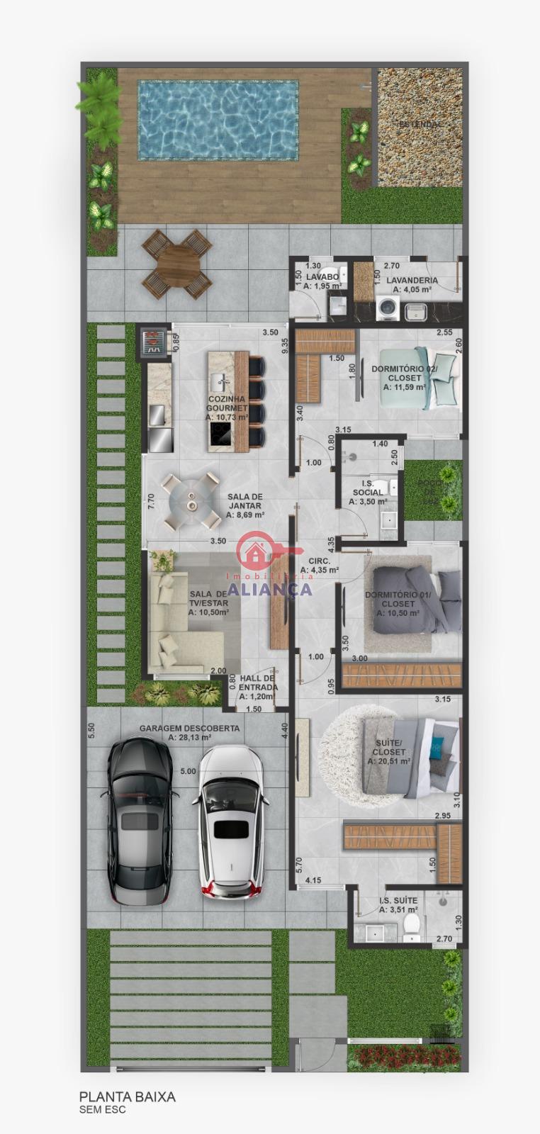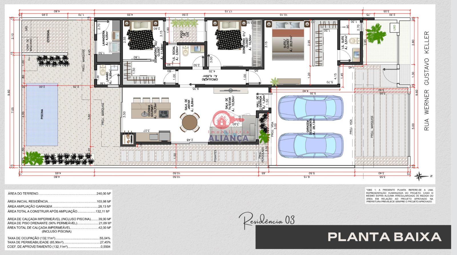 ÁREA CONSTRUÍDA: 104,00m² ÁREA TOTAL TERRENO: 240,00m²